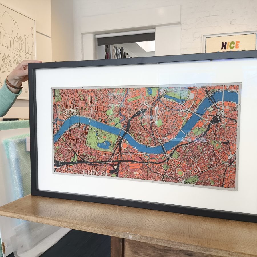 Travel dreams and memories are personal – tell Jo about your special place and he’ll make a map for you to explore. He’ll deal with coordinates and projections, frames and lasers – so you can dream on. You will get a visual draft for your map before it’s being cut – so you can suggest changes. The circular frames are made by Jo – from CNC’ing the frame to cutting the anti-reflective, UV protection Artglass™. You can choose rectangular frames directly from and with your framer. Jo recommends the good people at Ingo Fincke on Battersea Rise in London.